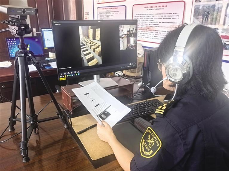 此次远程查检中,海关依托“关视通”平台和“单一窗口”App,让企业通过镜头清晰展示货物堆存状态、数量与外包装标识等信息,海关关员实时在线核对货物规格、检疫要求等信息,同步完成查检记录与结果反馈,整个作业时间压缩至1小时内,查检周期直接缩短至0.5天,效率提升近10倍。